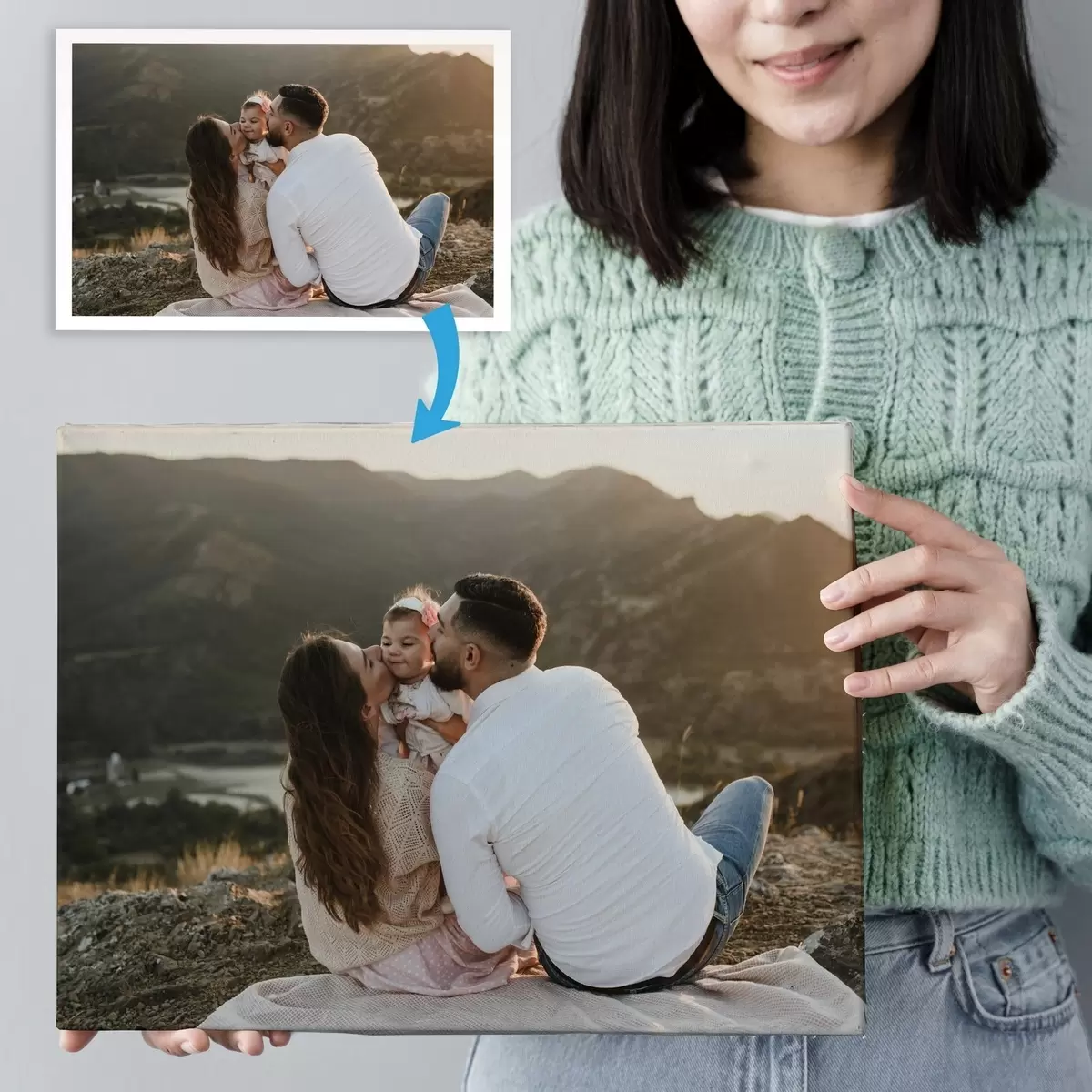 Wir können Ihr Foto auf Leinwand oder als Poster drucken. Laden Sie Ihr Foto hoch und passen Sie es in unserem Editor in nur 5 Minuten an.