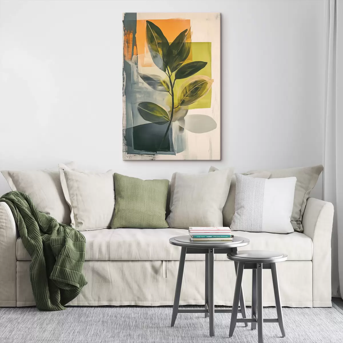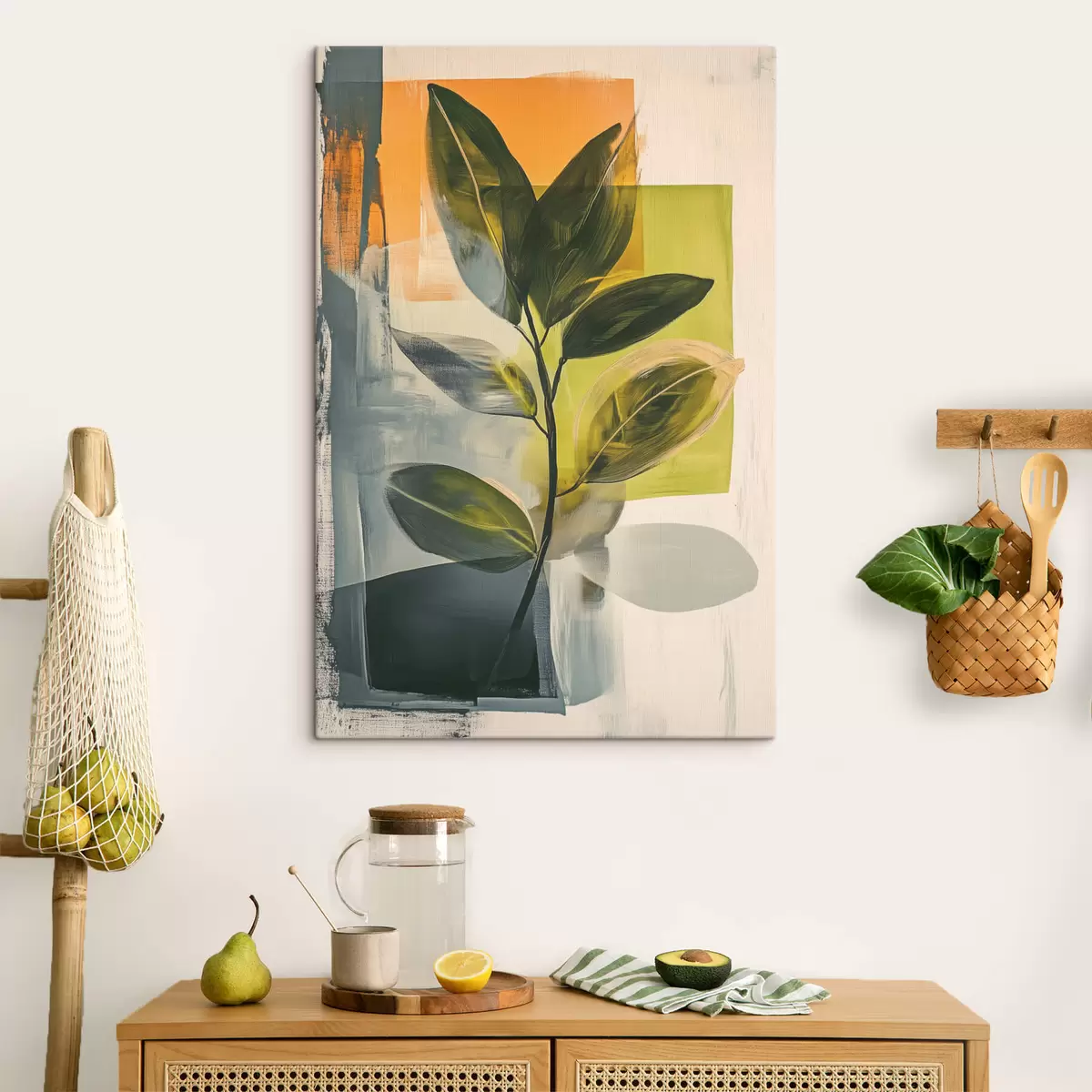 Wandbilder Ein Zweig mit Blättern vor einem abstrakten Hintergrund Art. s47249