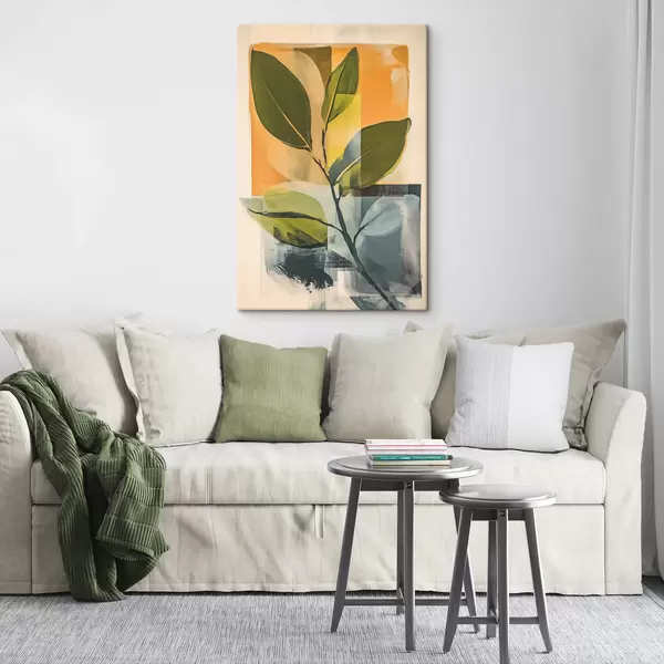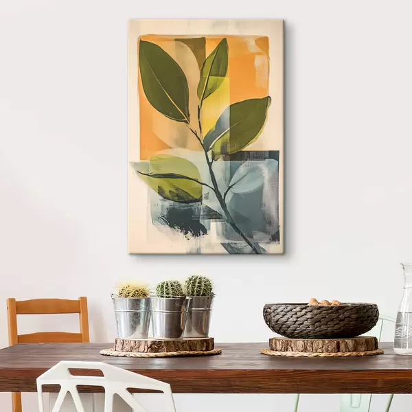 Wandbilder Ein Zweig mit Blättern vor einem abstrakten Hintergrund Art. s47250