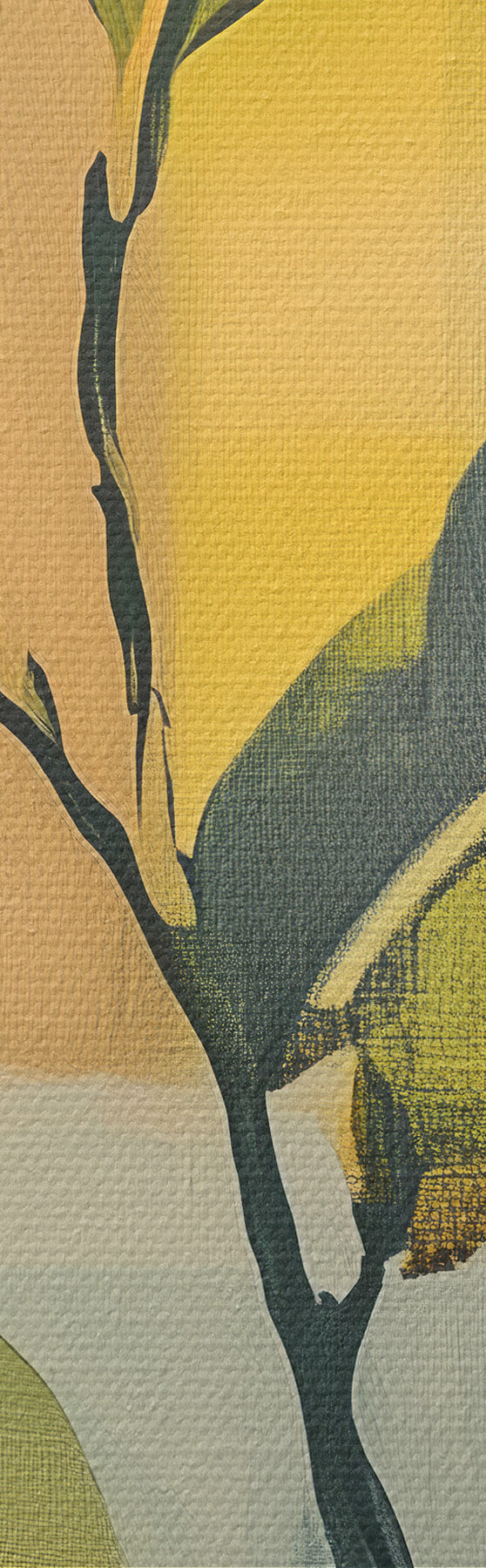 Wandbilder Ein Zweig mit Blättern vor einem abstrakten Hintergrund s47250
