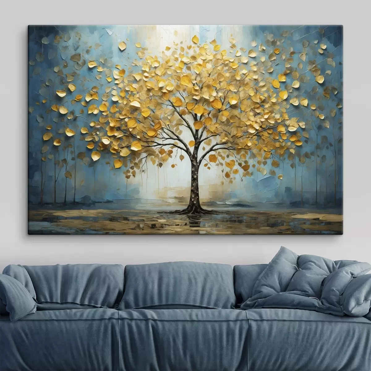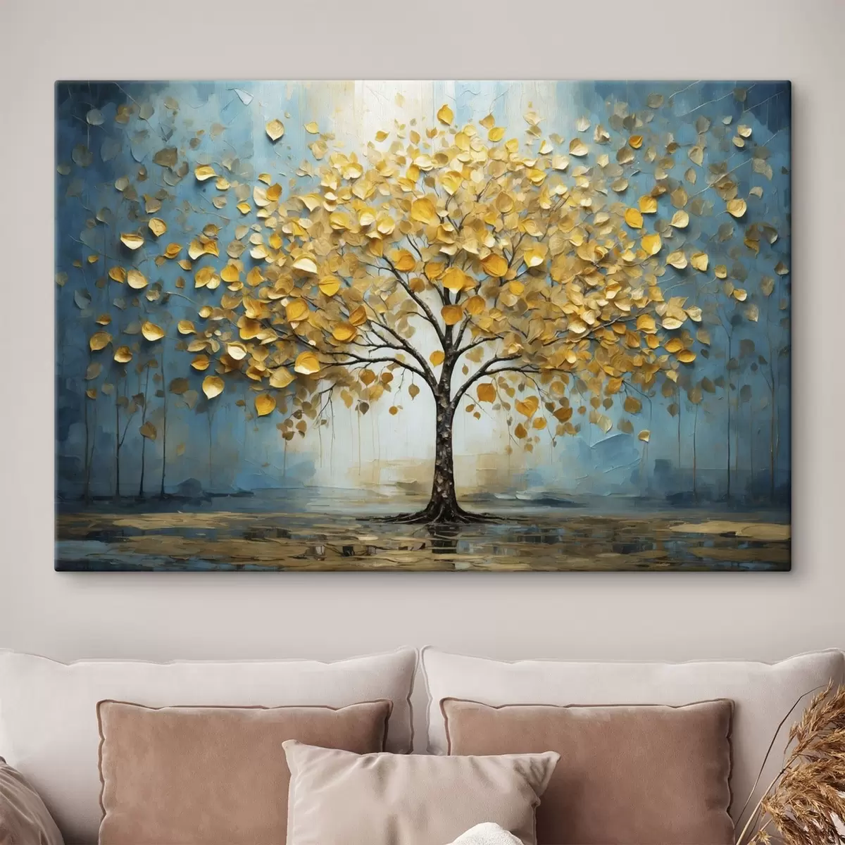 Wandbilder Baum mit gelben Blättern vor blauem Hintergrund s47256