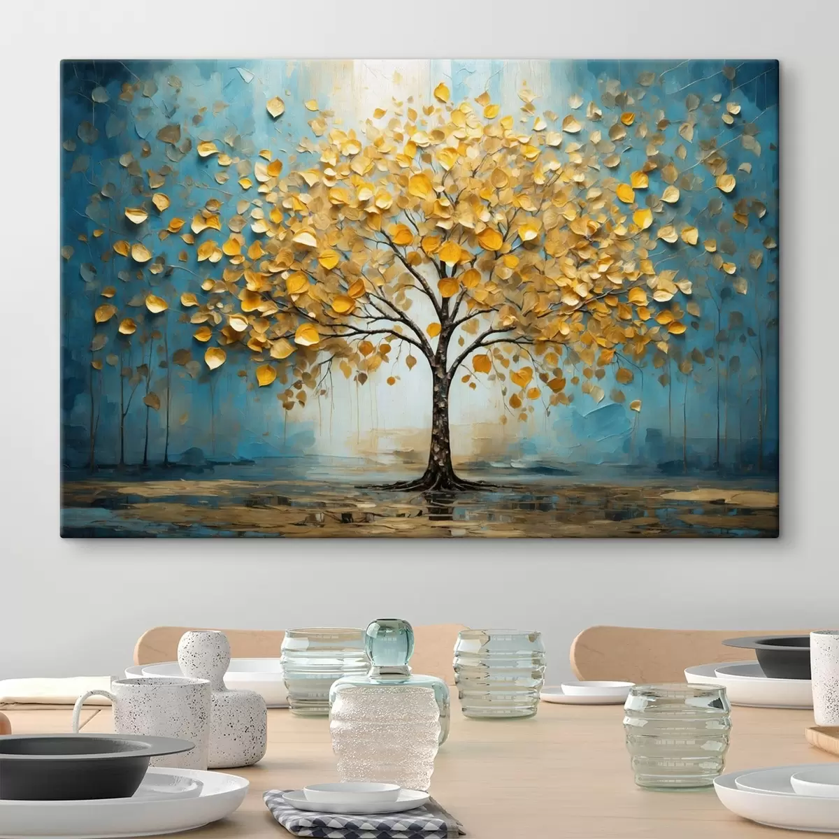 Wandbilder Baum mit gelben Blättern vor blauem Hintergrund Art. s47256