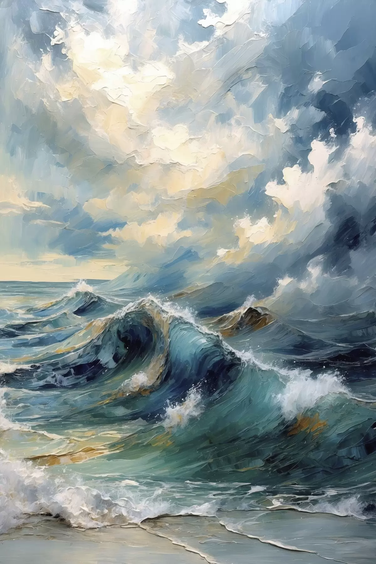 Wandbilder Meereswellen unter einem hell bewölkten Himmel s47275