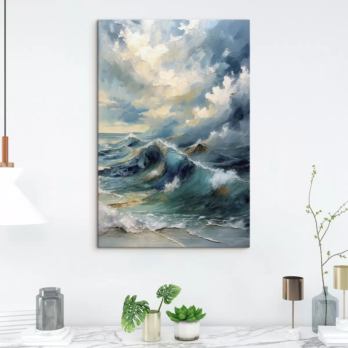 Wandbilder Meereswellen unter einem hell bewölkten Himmel Art. s47275