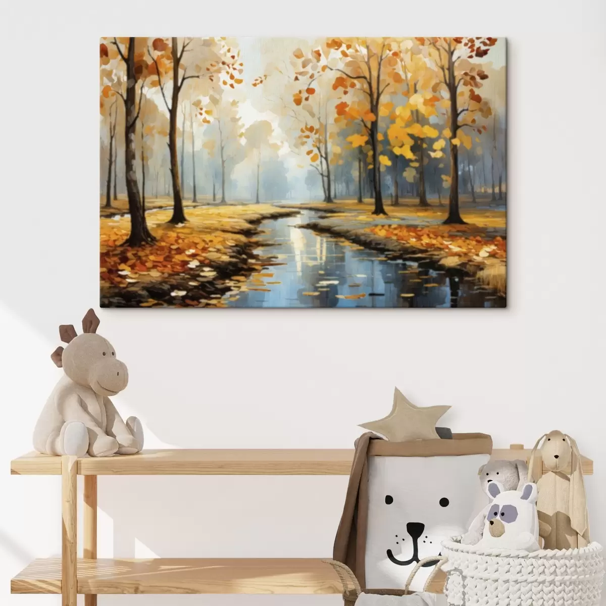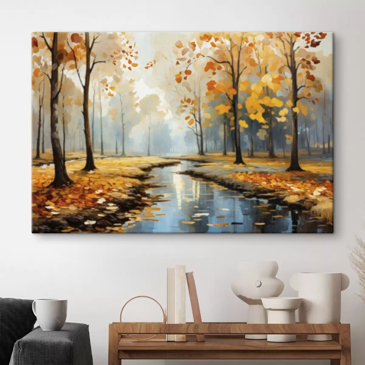 Wandbilder Herbstwald mit Bach und gelben Blättern Art. s47278