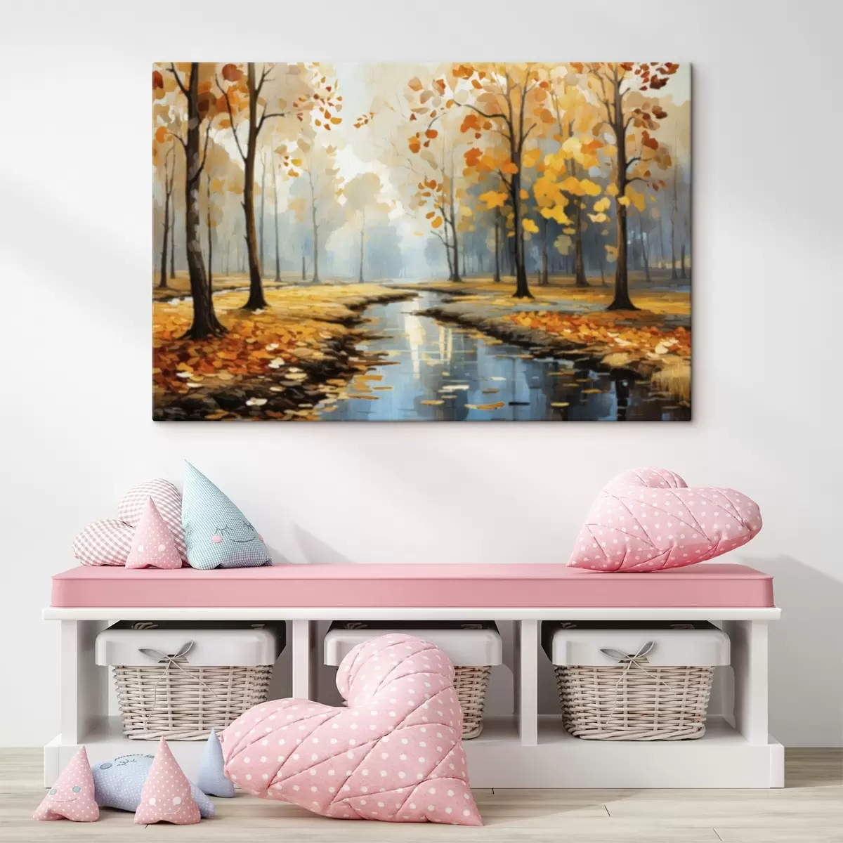 Wandbilder Herbstwald mit Bach und gelben Blättern s47278