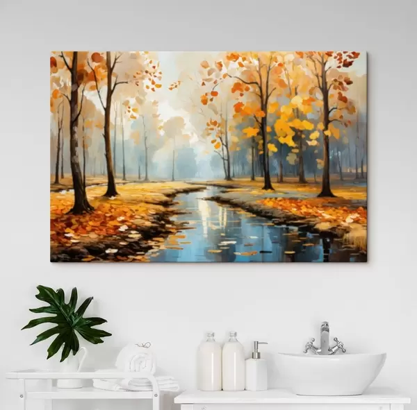 Wandbilder Herbstwald mit Bach und gelben Blättern Art. s47278