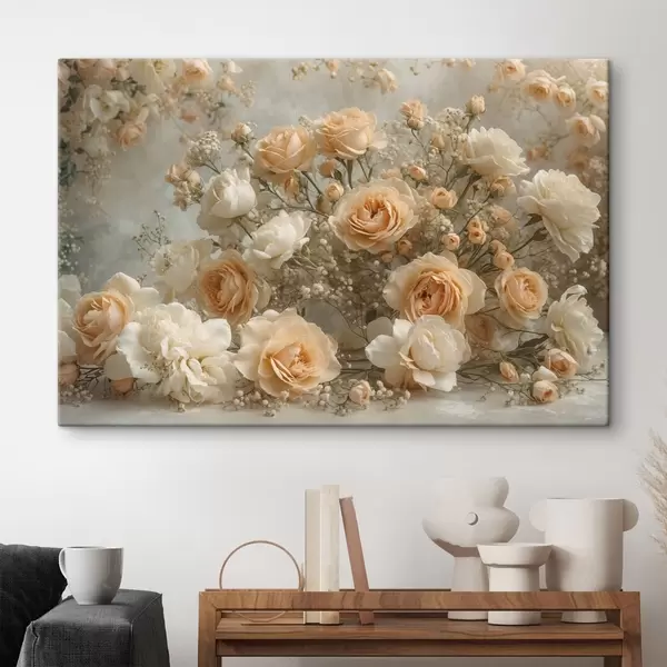 Wandbilder Zarte cremefarbene Rosen in einem großen Arrangement s47279