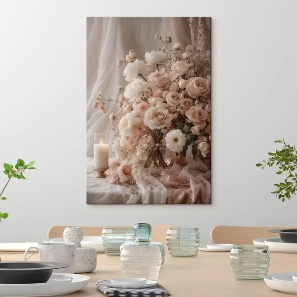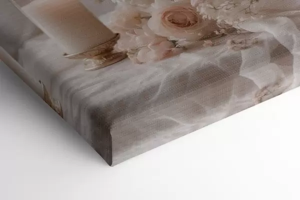 Wandbilder Cremefarbene Blumen neben einer brennenden Kerze Art. s47281