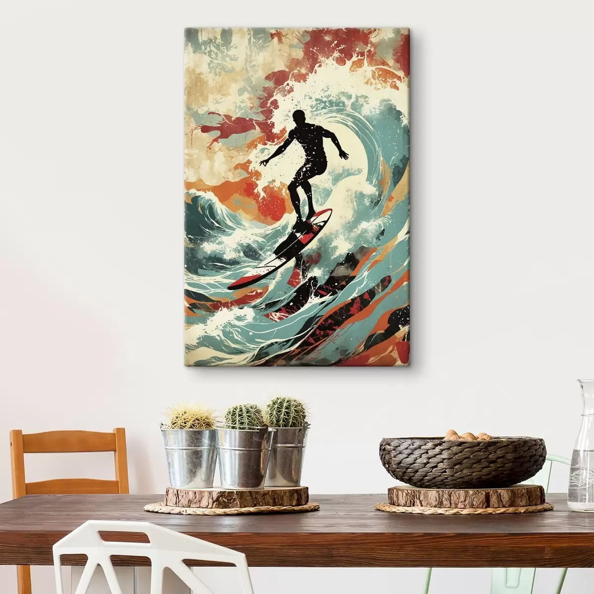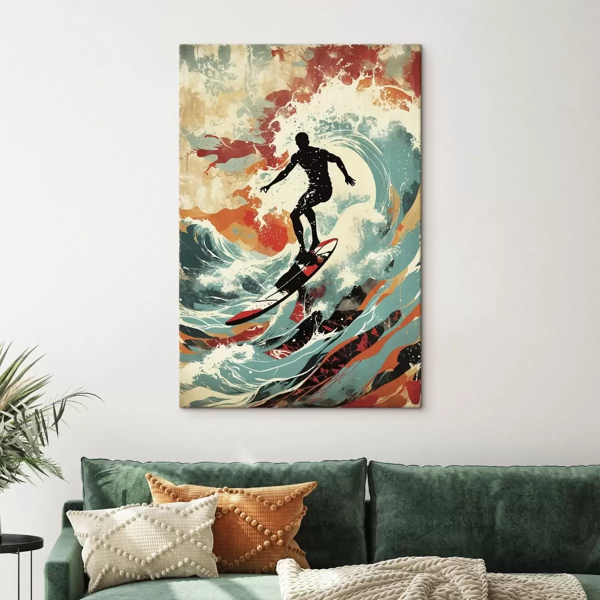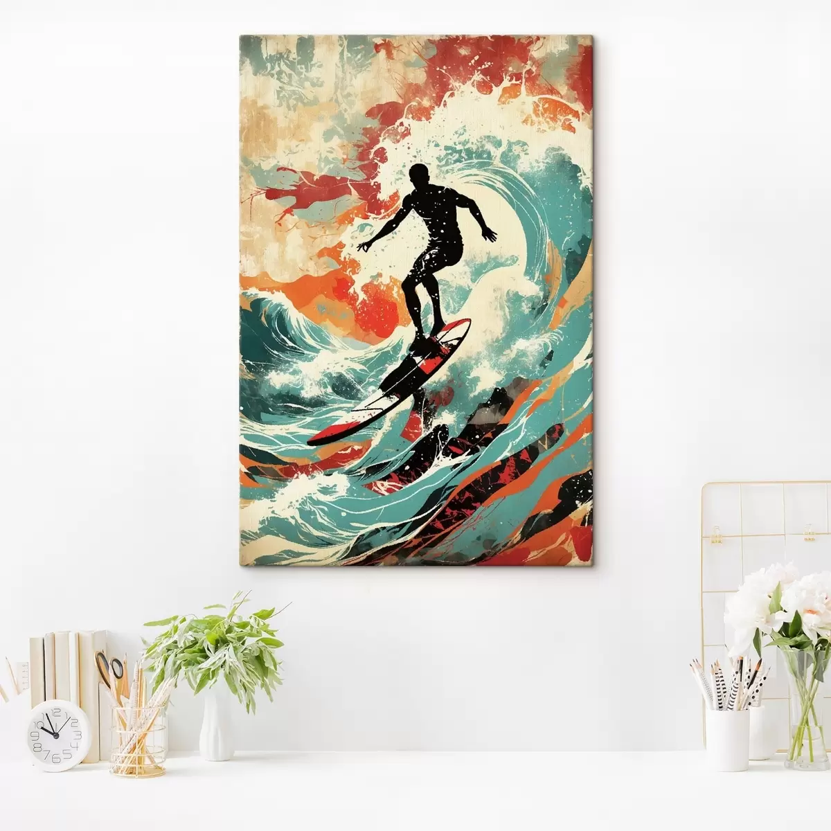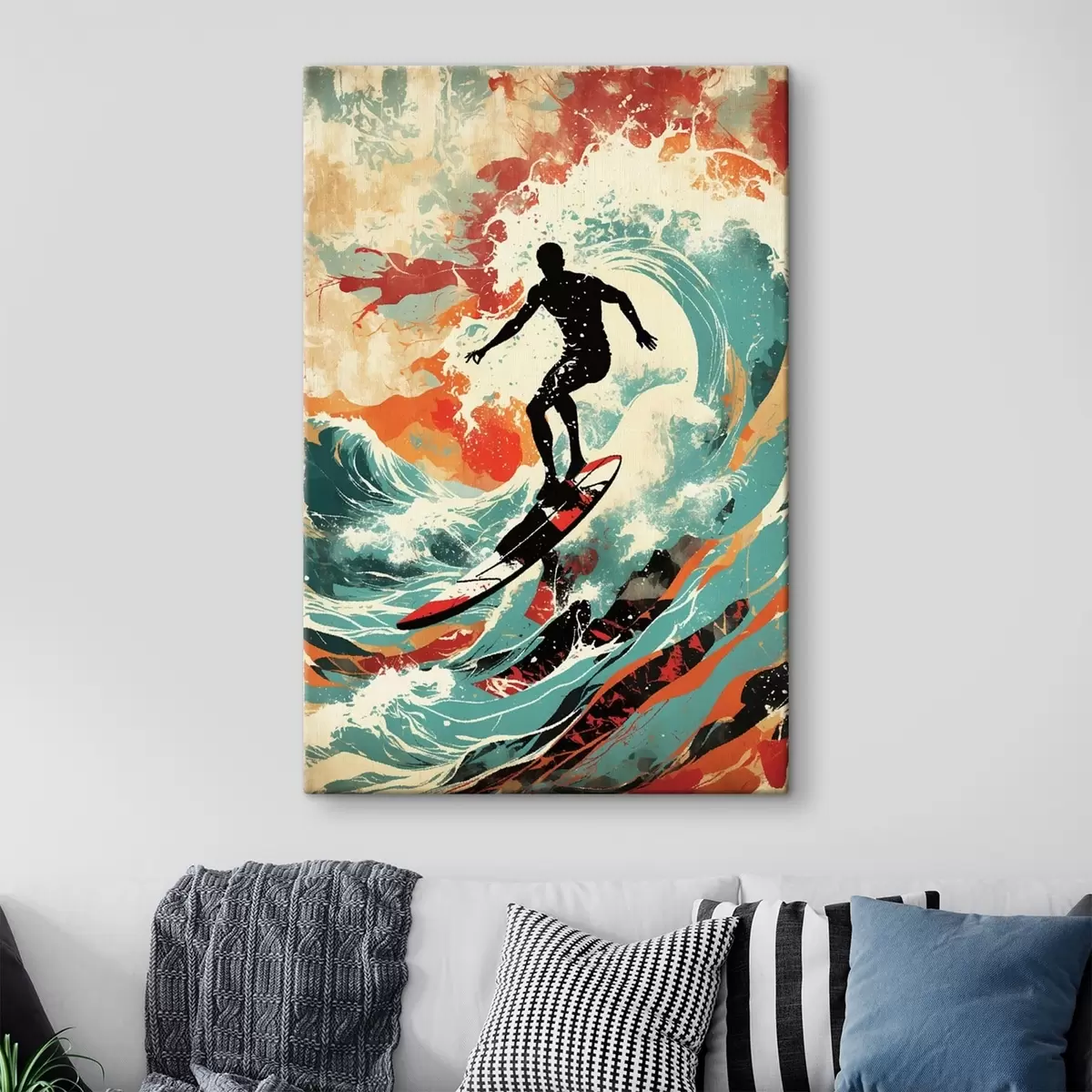 Wandbilder Surfer-Silhouette auf Wellen in leuchtenden Farben Art. s47284