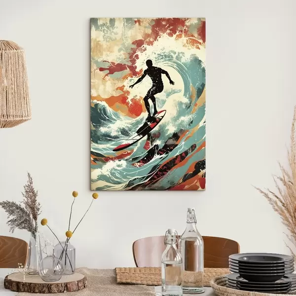 Wandbilder Surfer-Silhouette auf Wellen in leuchtenden Farben Art. s47284