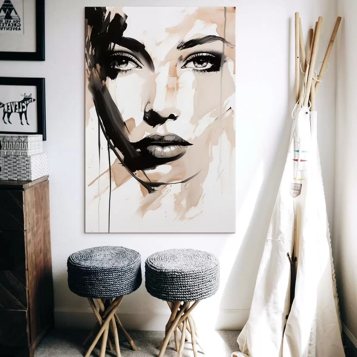 Wandbilder Abstraktes Frauenporträt in hellen Farbtönen s47290