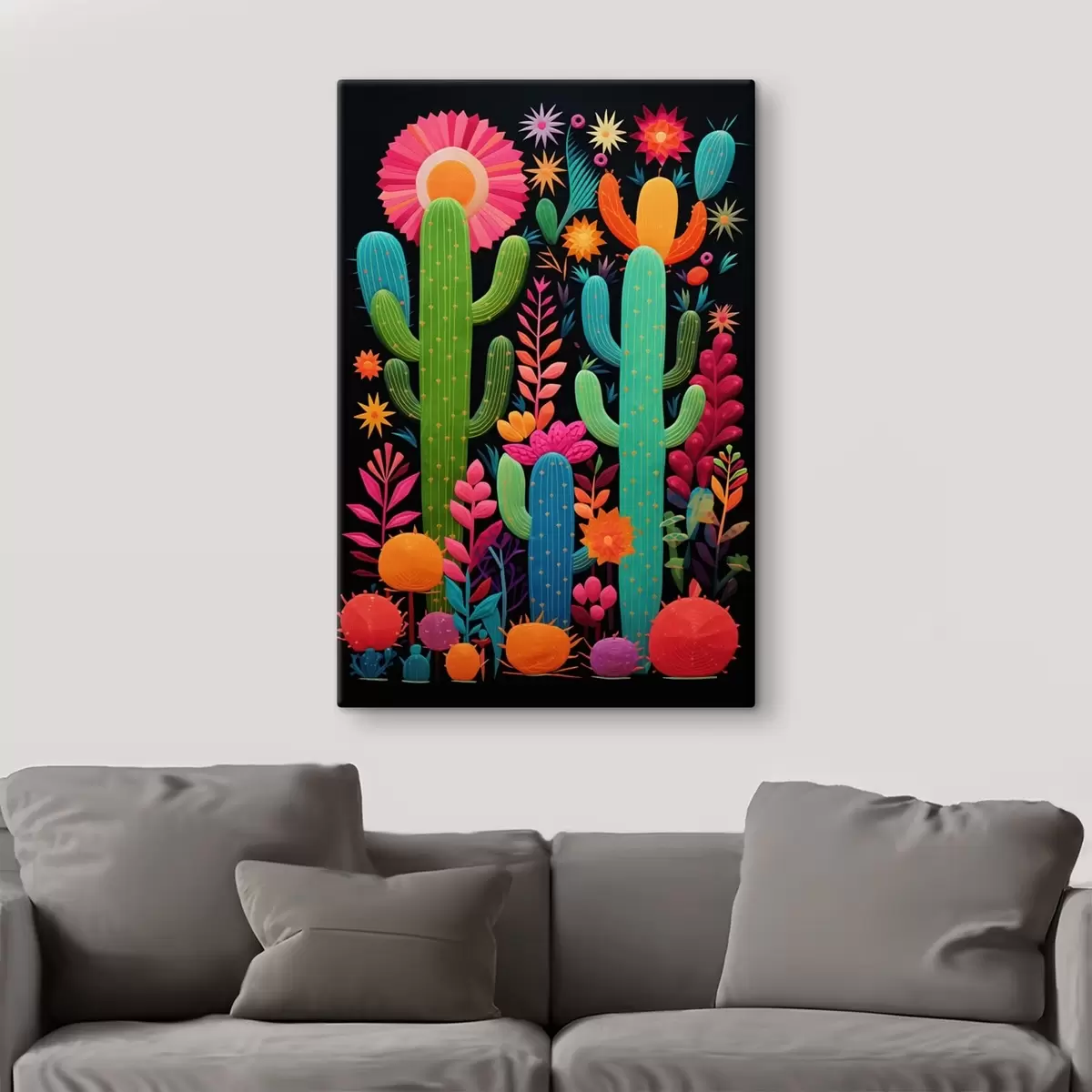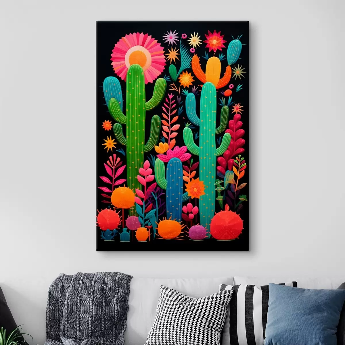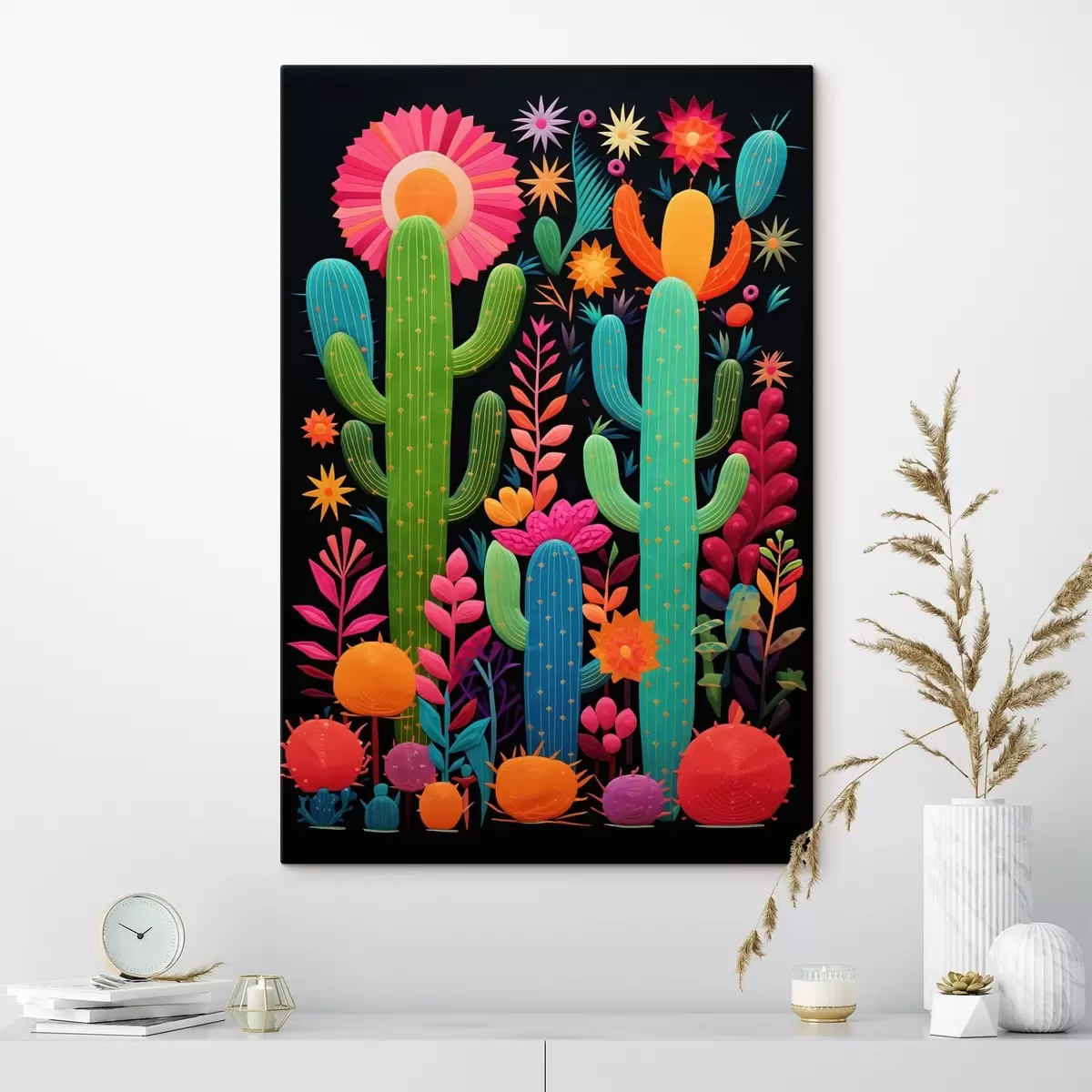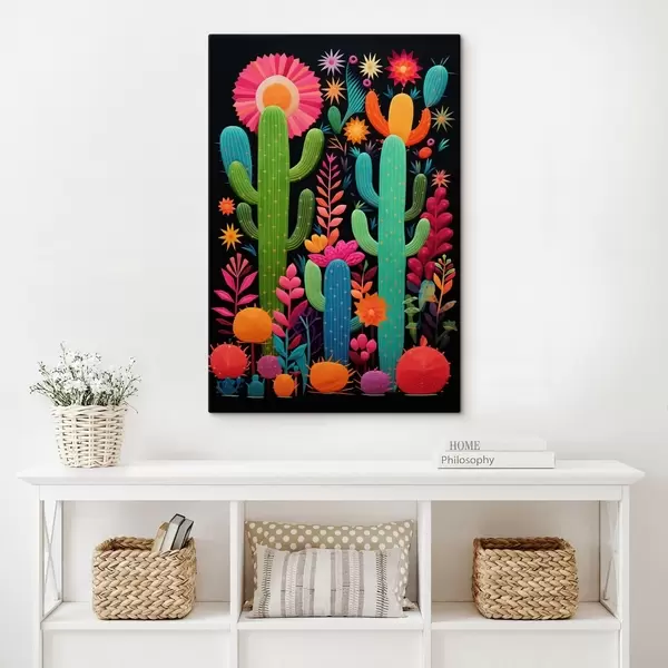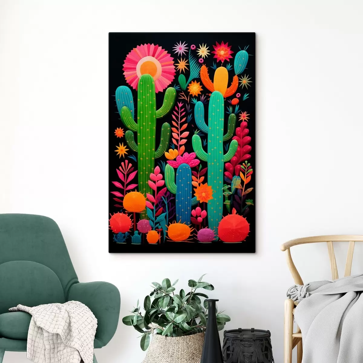 Wandbilder Lebendige Kakteen und Blumen auf dunklem Hintergrund Art. s47297