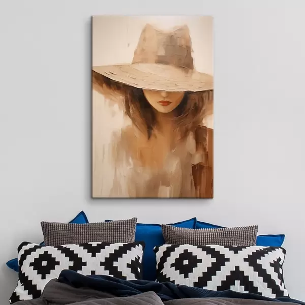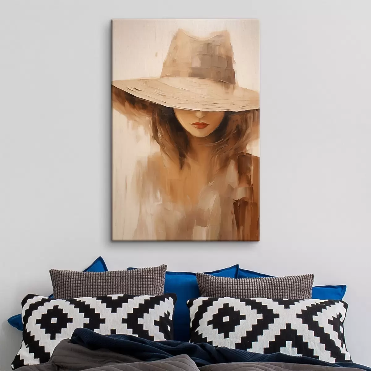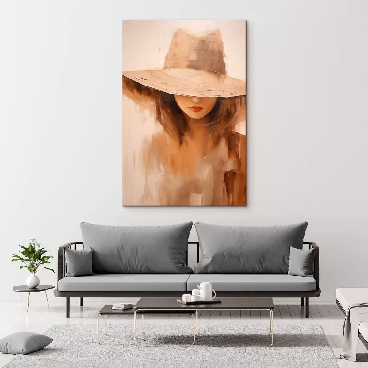 Wandbilder Frau mit Hut in warmen abstrakten Strichen Art. s47312