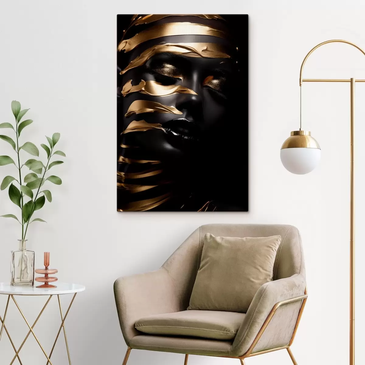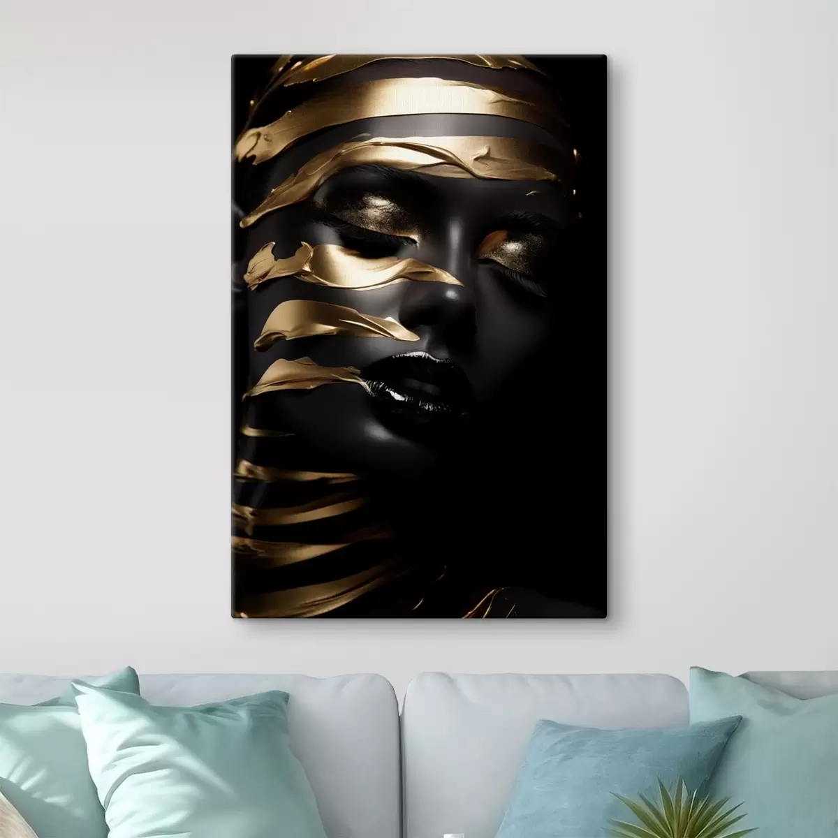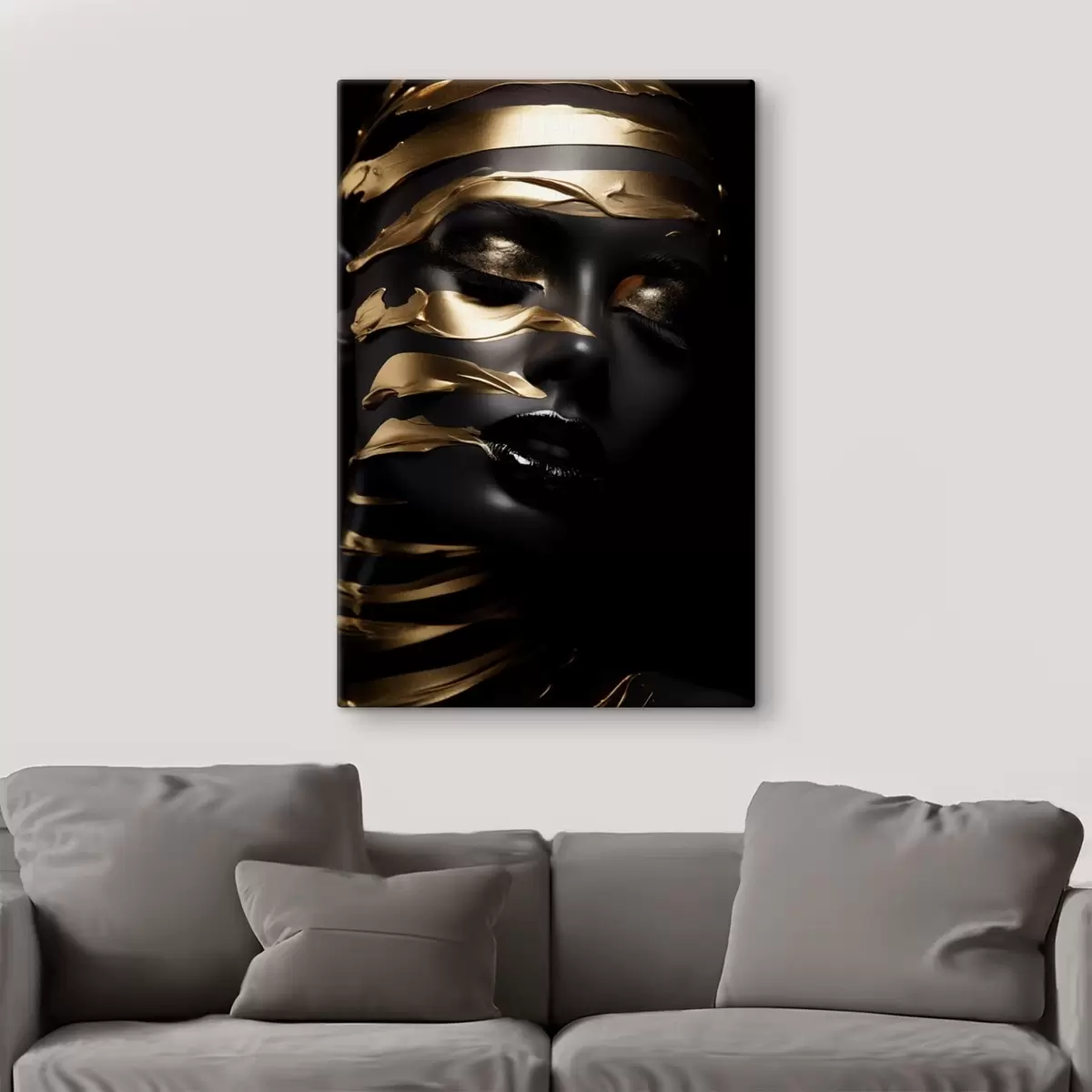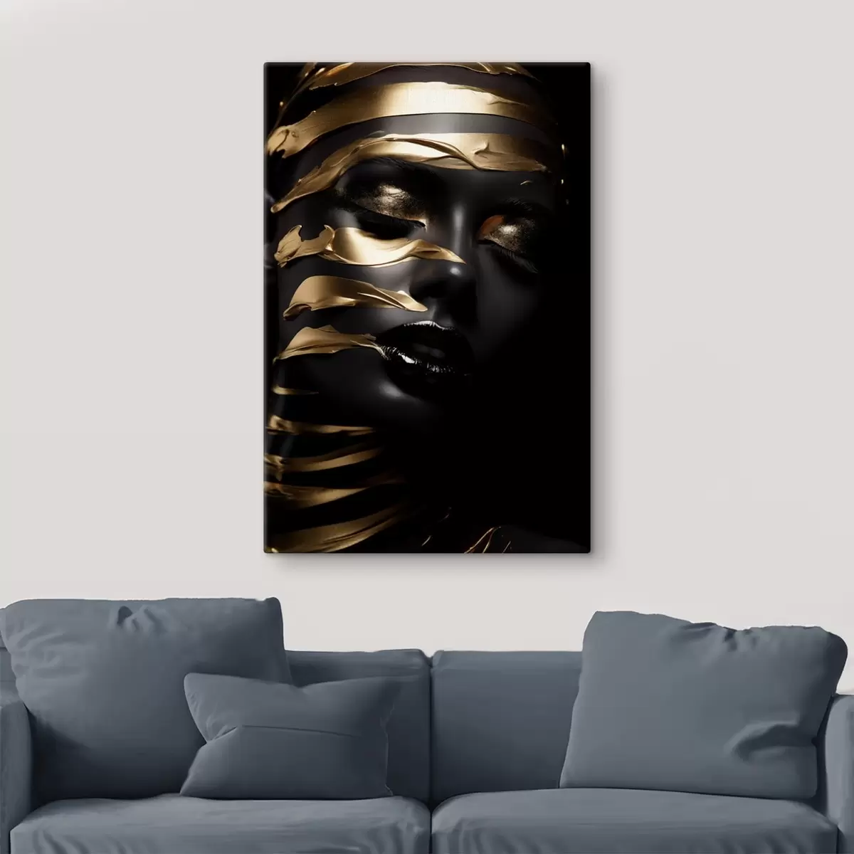 Wandbilder Gesicht mit dunklem Ton und Streifen s47321