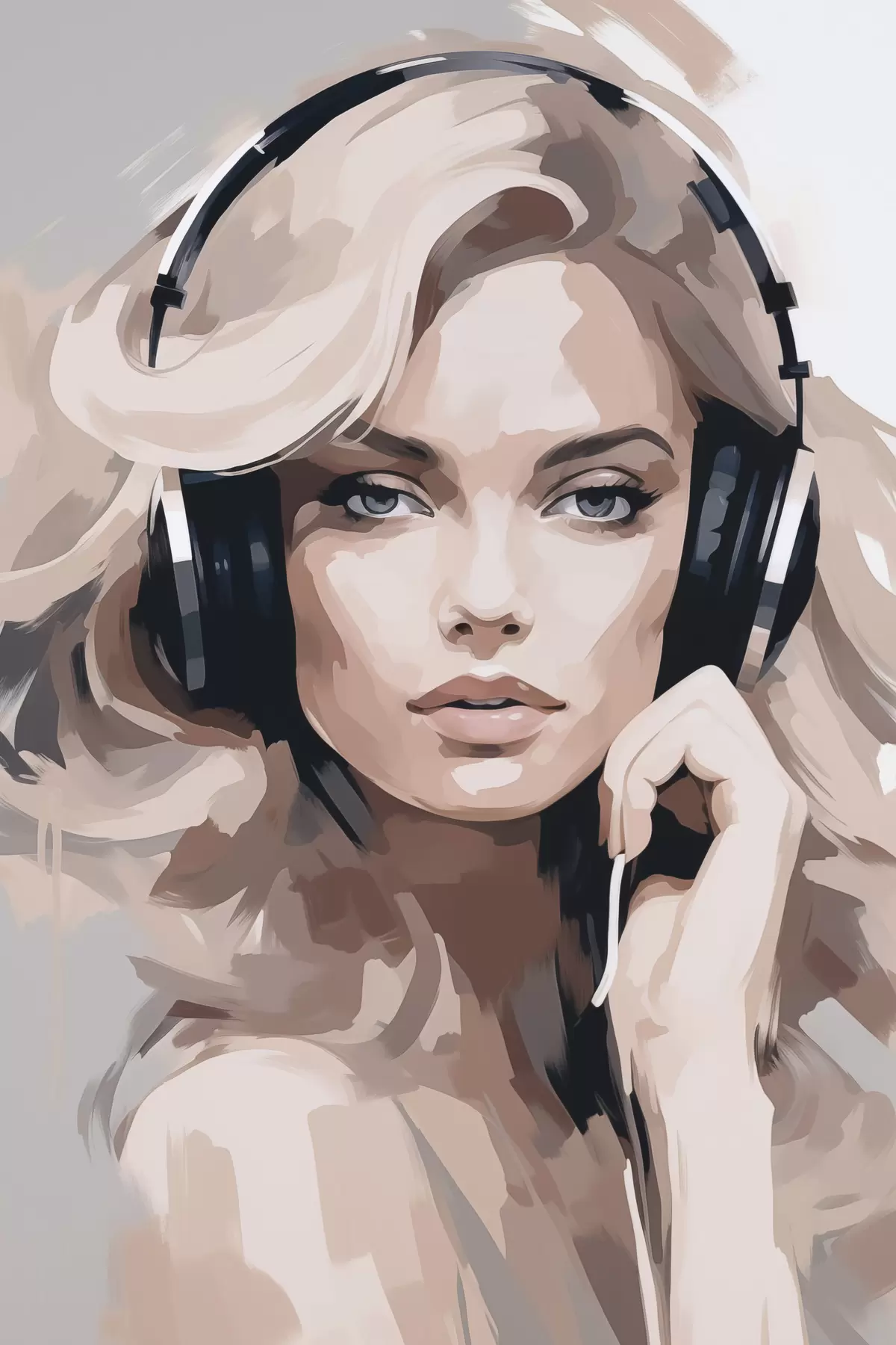 Wandbilder Porträt eines Mädchens mit Kopfhörern Art. s47410