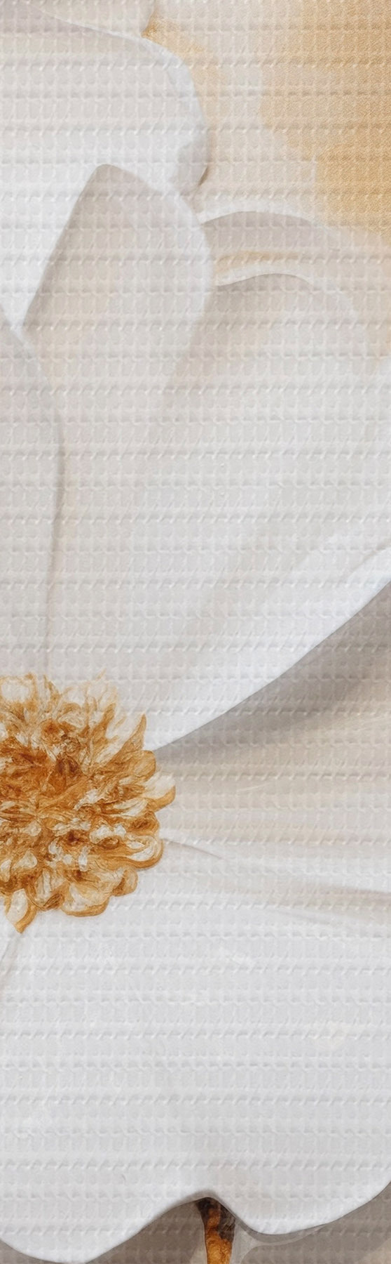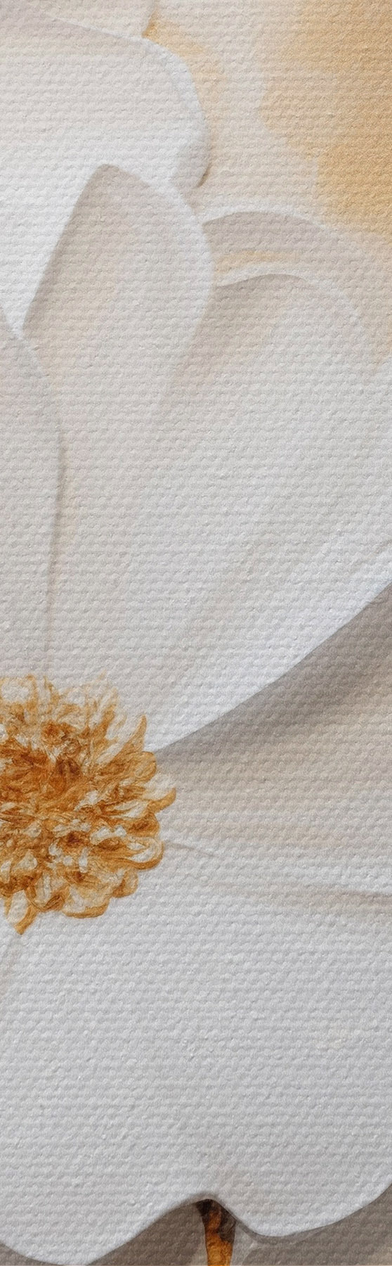 Wandbilder Weiße Blumen mit gelben Akzenten und zarten Blättern vor einem strukturierten Hintergrund, moderne Kunst Art. s47414