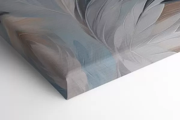 Wandbilder Zarte hellblaue und braune Federn mit einer weichen, ätherischen Textur vor einem weißen Hintergrund s47416