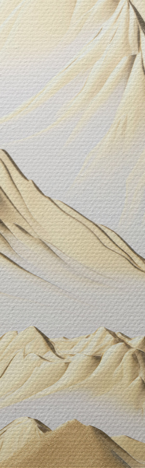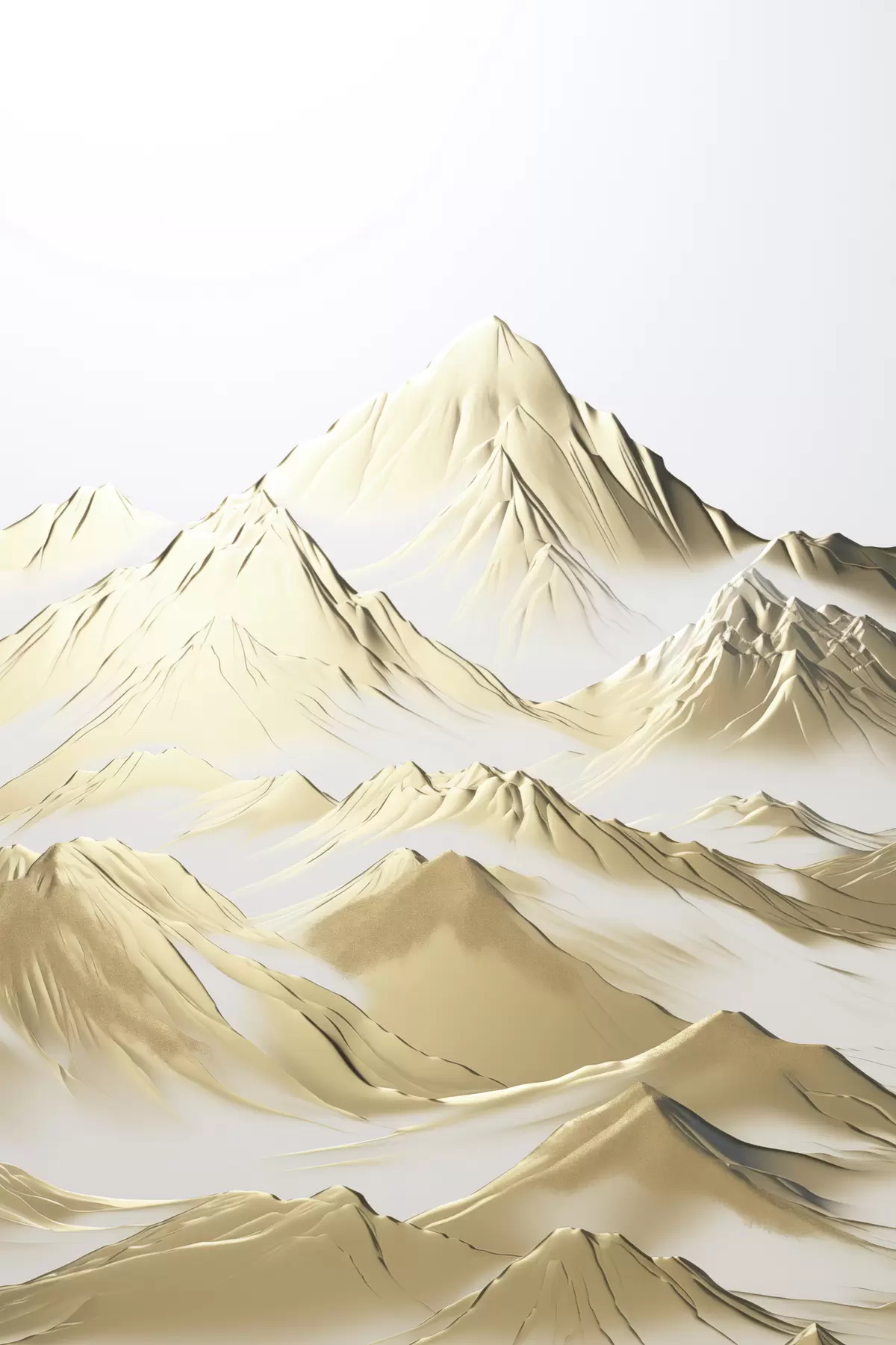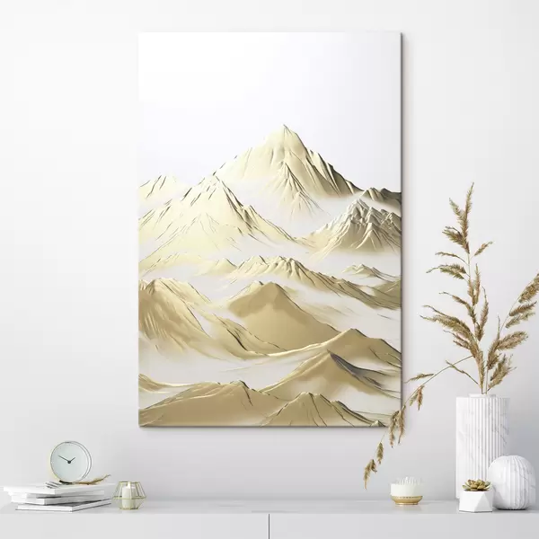 Wandbilder Eine Landschaft aus gelben, schneebedeckten Bergen mit scharfen Gipfeln und tiefen Tälern unter einem hellen Himmel Art. s47421