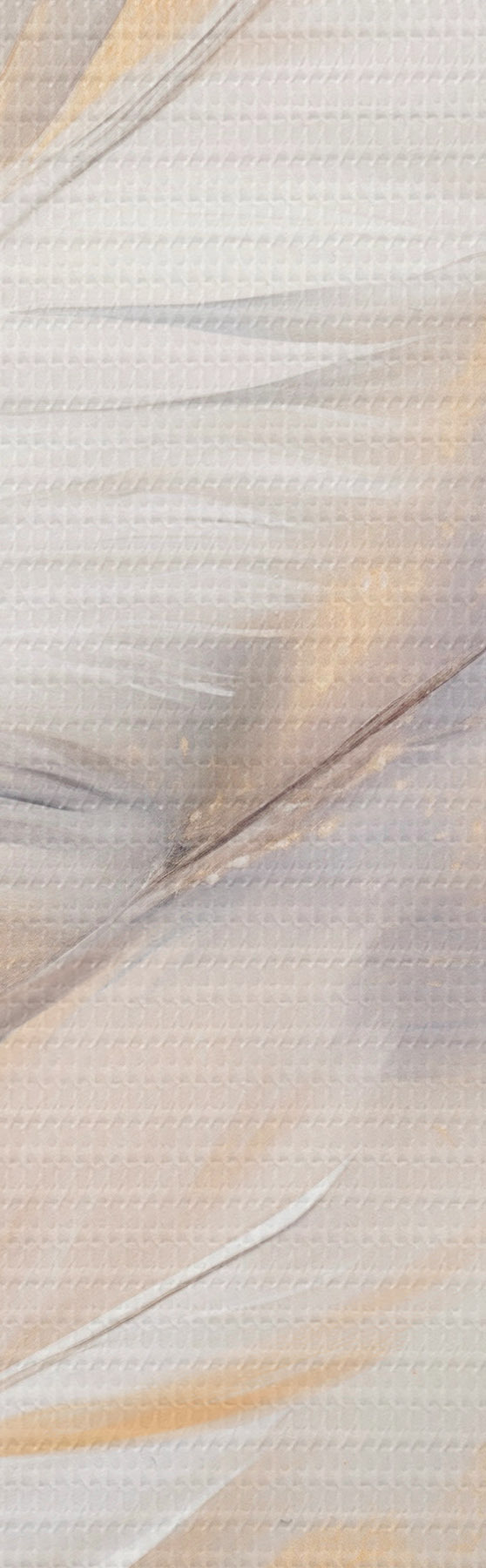 Wandbilder Große, weiche Federn in einer Mischung aus Weiß-, Gelb- und Brauntönen vor einem hellen, abstrakten Hintergrund s47443