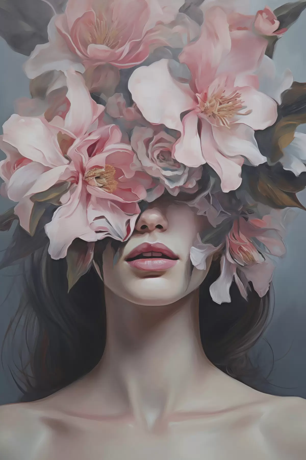 Wandbilder Surrealistisches Porträt einer Frau mit Blumen s47489