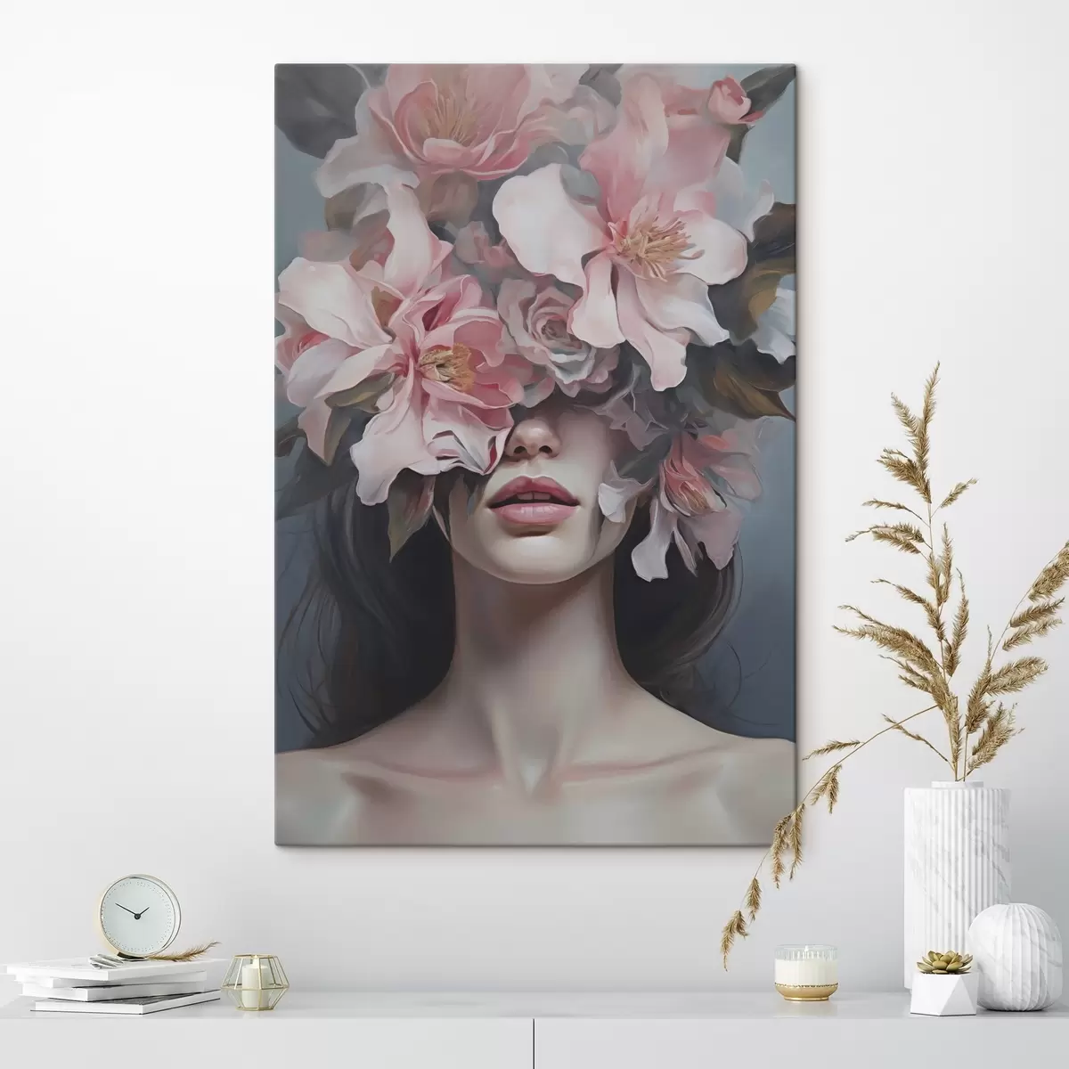 Wandbilder Surrealistisches Porträt einer Frau mit Blumen Art. s47489