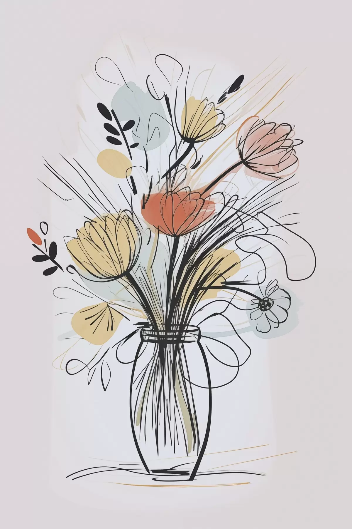 Wandbilder Blumen in einer Vase, Nachahmung einer Zeichnung Art. s47494
