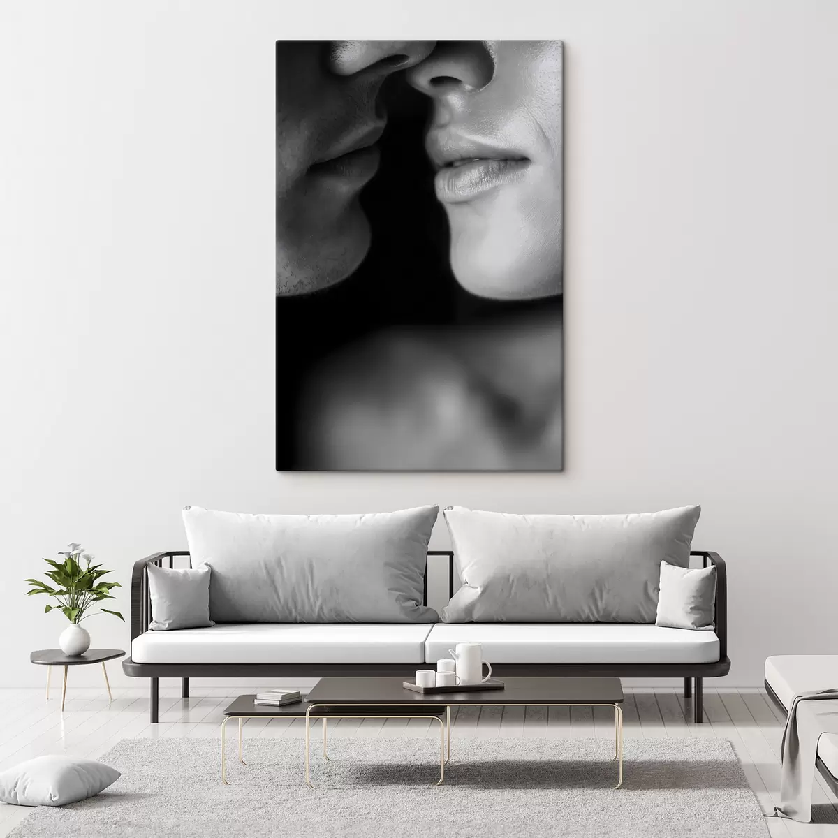 Wandbilder Schwarz-weiße Lippen eines Mannes und einer Frau s47687