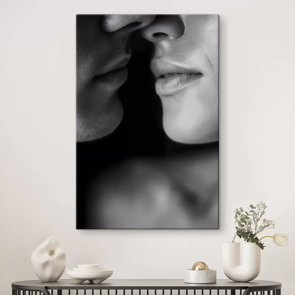 Wandbilder Schwarz-weiße Lippen eines Mannes und einer Frau Art. s47687