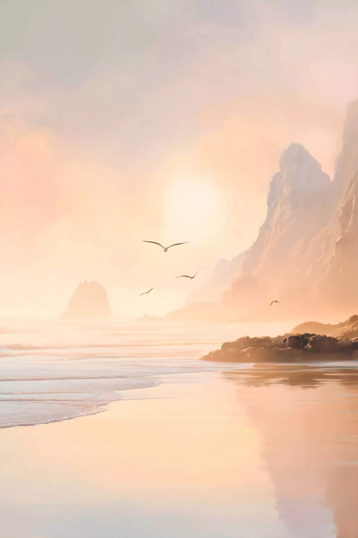 Wandbilder Meeresdämmerung vor dem Hintergrund der Berge s47690