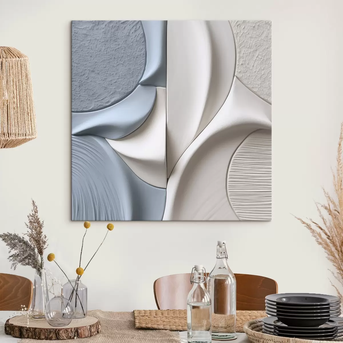 Drei Materialtypen stehen zur Verfügung: Economic Canvas - ein dichtes und haltbares Material für den Digitaldruck, identisch mit Malerleinwand, wasserfeste Oberfläche, realistische Wiedergabe von Details, mittelkörniges Material. Premium Canvas - die Textur ähnelt der einer Malerleinwand (verwobene kleine Fäden). Weiche, detaillierte Wiedergabe des Bildes auf einer matten Oberfläche. Eco-Premium - hochwertiges Gewebe aus 100% Baumwolle. Dank der natürlichen Baumwollfasern ist das Material langlebig und verschleißfest. Hervorragende Farbwiedergabe und Detailtreue.