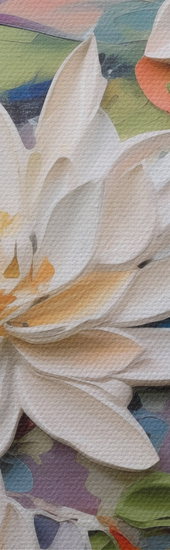 Drei Materialtypen stehen zur Verfügung: Economic Canvas - ein dichtes und haltbares Material für den Digitaldruck, identisch mit Malerleinwand, wasserfeste Oberfläche, realistische Wiedergabe von Details, mittelkörniges Material. Premium Canvas - die Textur ähnelt der einer Malerleinwand (verwobene kleine Fäden). Weiche, detaillierte Wiedergabe des Bildes auf einer matten Oberfläche. Eco-Premium - hochwertiges Gewebe aus 100% Baumwolle. Dank der natürlichen Baumwollfasern ist das Material langlebig und verschleißfest. Hervorragende Farbwiedergabe und Detailtreue.