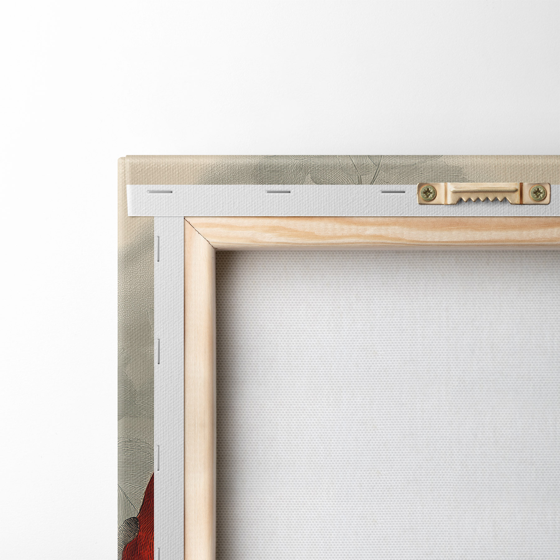 Um die Leinwand auf Keilrahmen zu spannen, ohne das Bild zu beschädigen, verwenden wir ein gespiegeltes Bild.