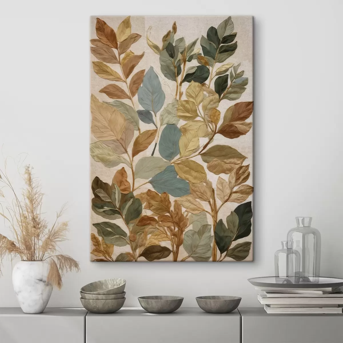 Wandbilder Dekorative Blätter in einer warmen, natürlichen Farbpalette Art. s47759