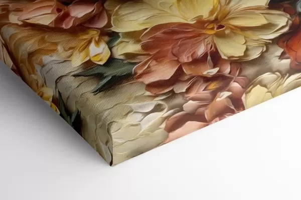 Wandbilder Üppige Komposition aus leuchtenden Blumen in warmen Farbtönen Art. s47760