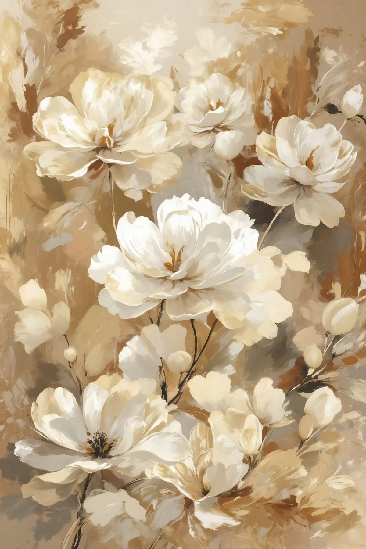 Wandbilder Große, helle Blumen, mit breiten Pinselstrichen gemalt s47761