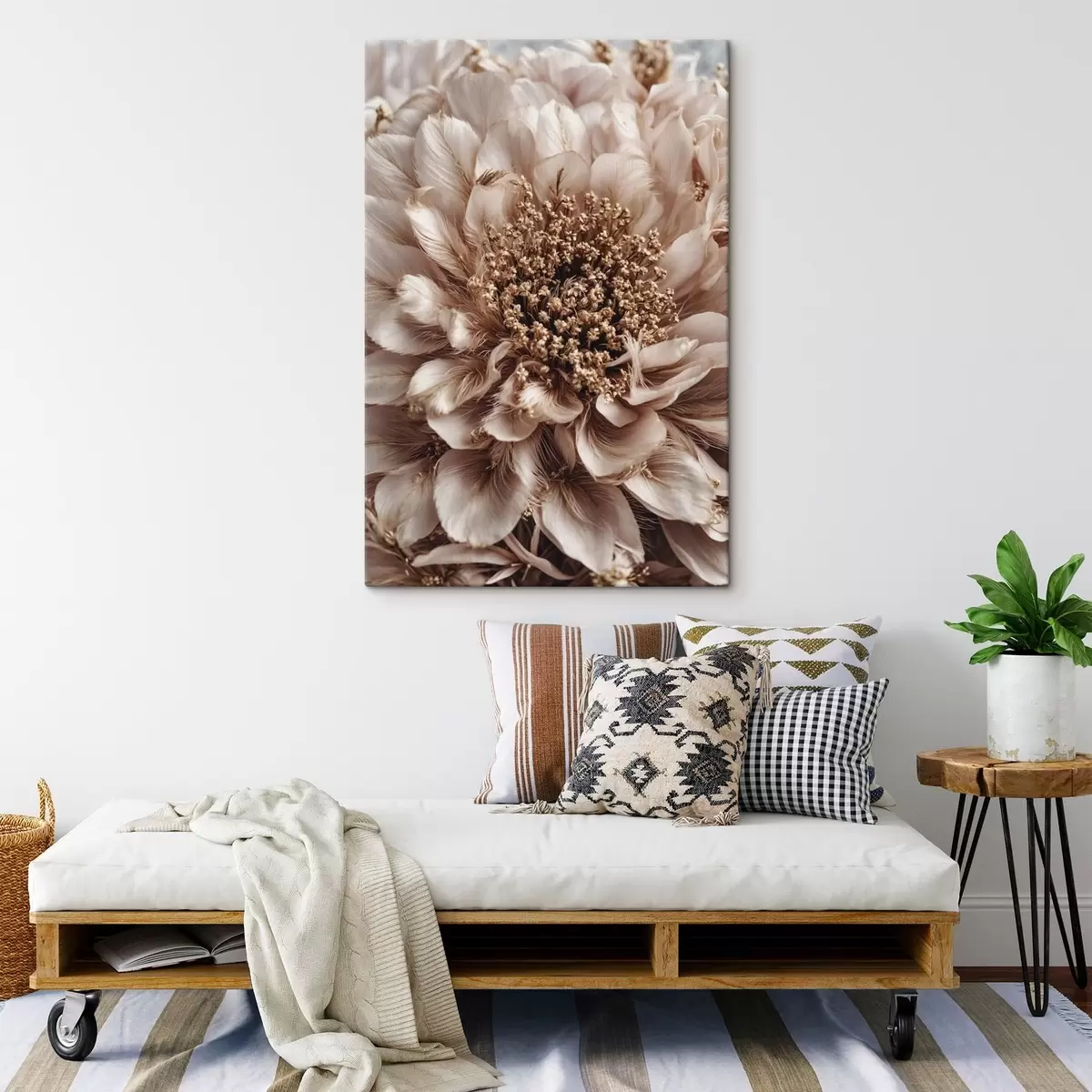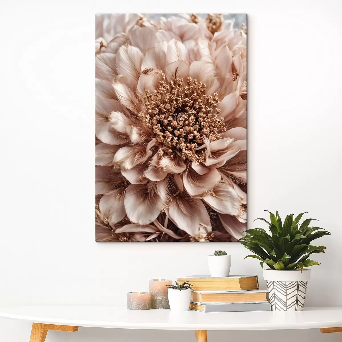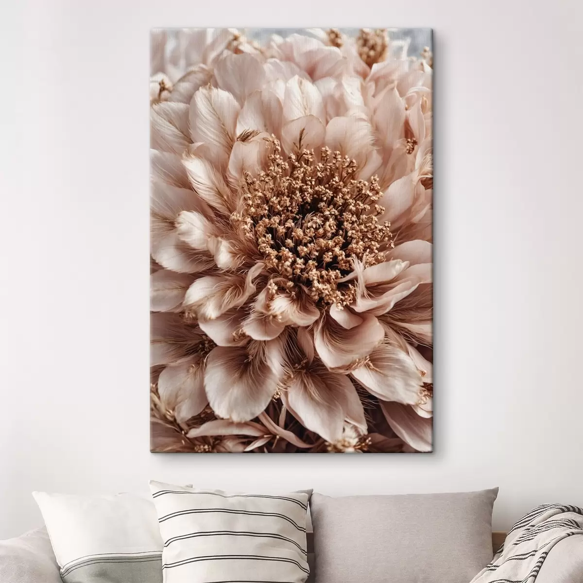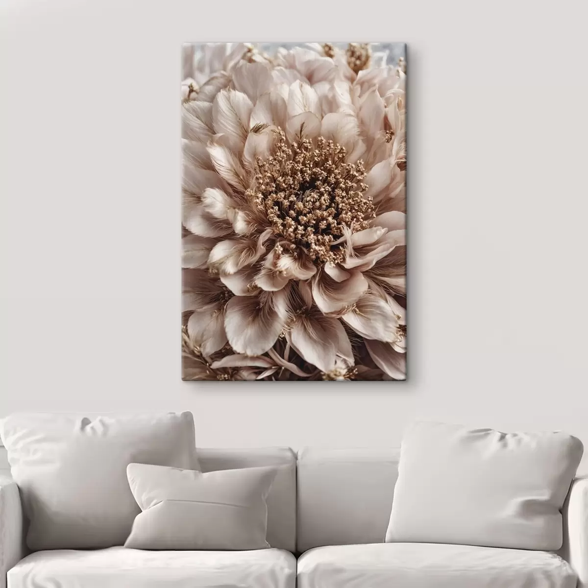 Wandbilder Nahaufnahme einer blassen Blume mit reich strukturierten Blütenblättern Art. s47769