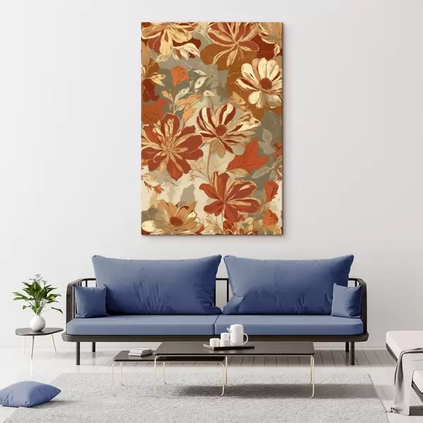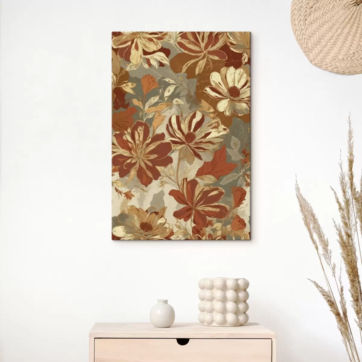 Wandbilder Blumenmuster in warmen Rost- und Cremetönen Art. s47770
