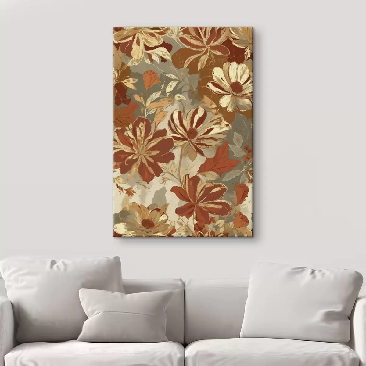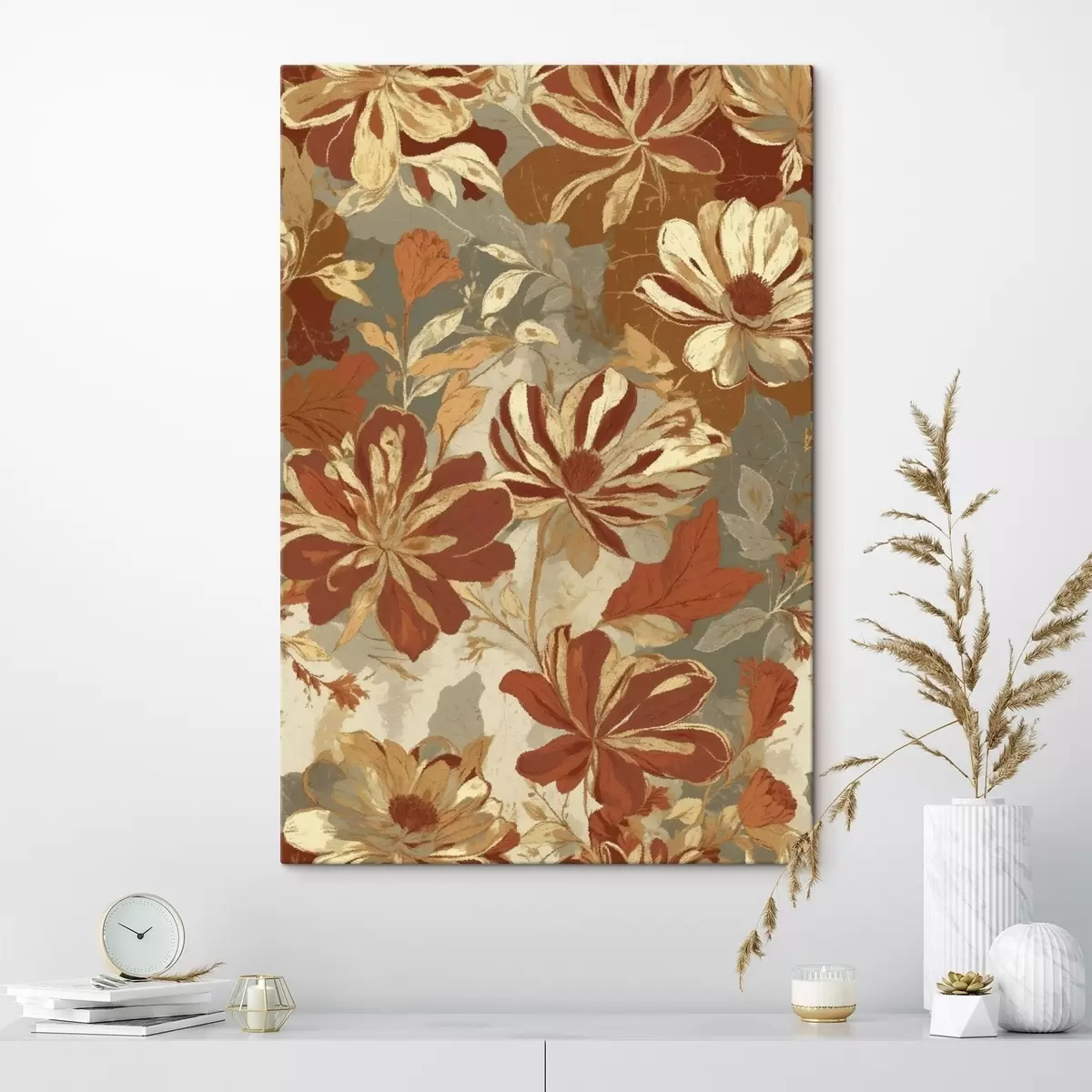 Wandbilder Blumenmuster in warmen Rost- und Cremetönen s47770
