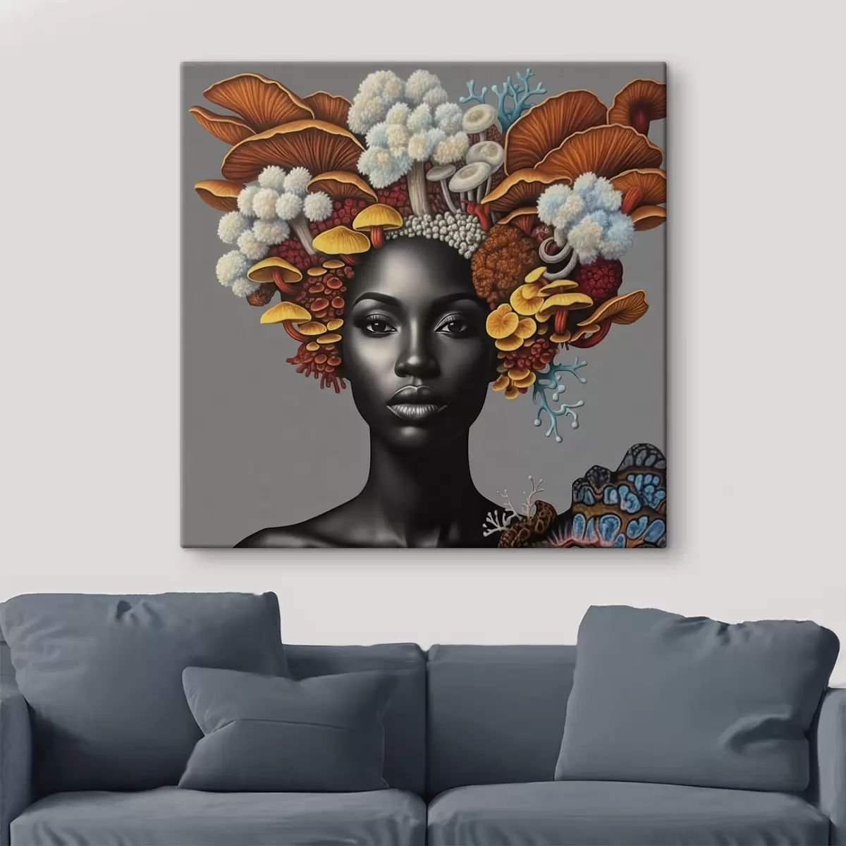 Wandbilder Porträt einer Frau mit Pilzen s47788
