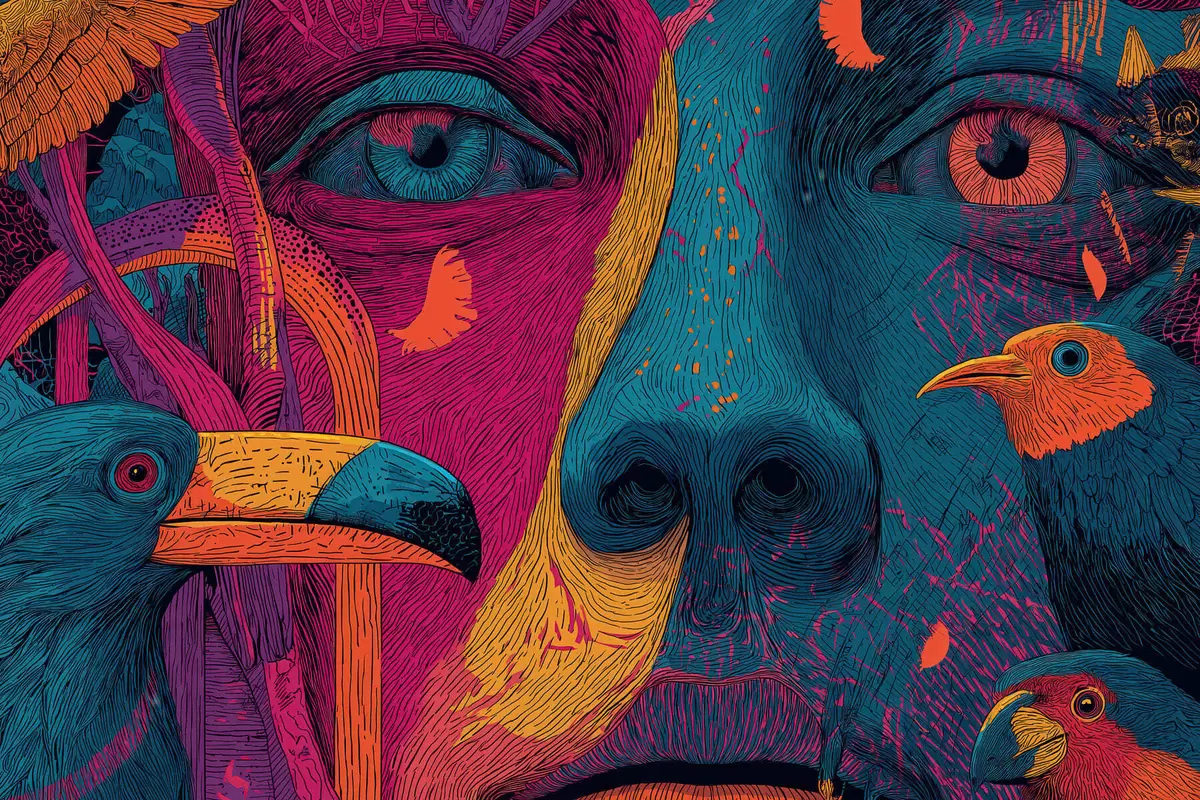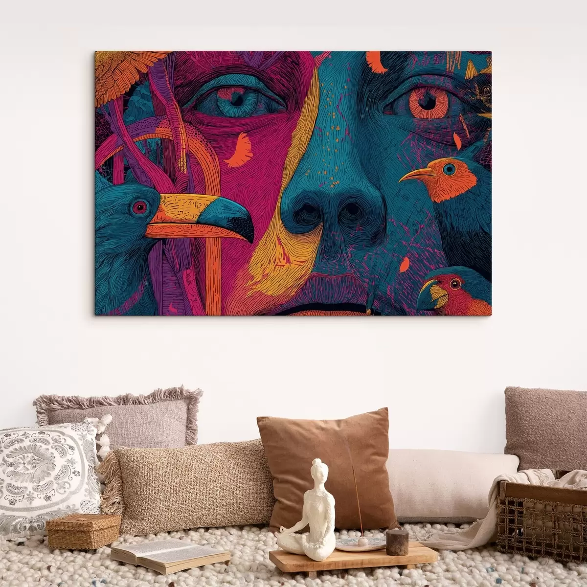 Wandbilder Psychedelisches Porträt mit Vögeln Art. s47789