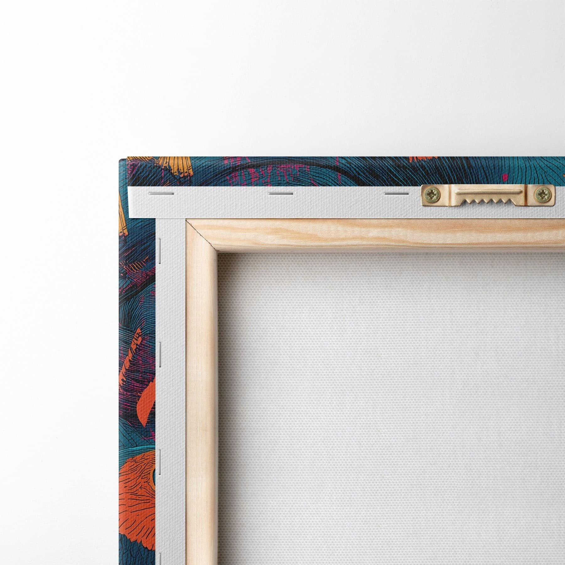 Um die Leinwand auf Keilrahmen zu spannen, ohne das Bild zu beschädigen, verwenden wir ein gespiegeltes Bild.