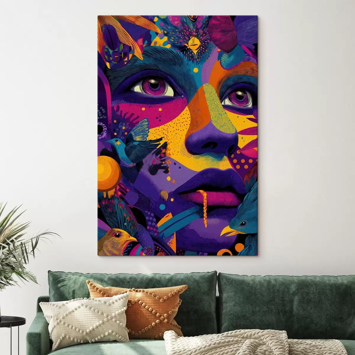 Wandbilder Psychedelisches Porträt mit Vögeln Art. s47790