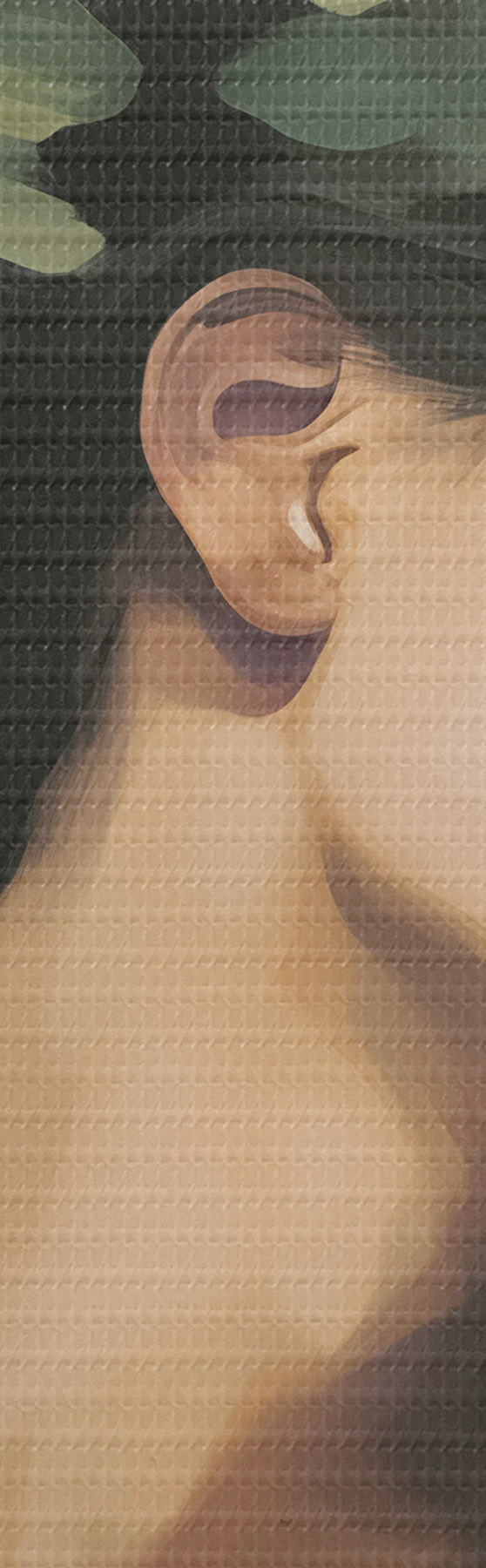 Um die Leinwand auf Keilrahmen zu spannen, ohne das Bild zu beschädigen, verwenden wir ein gespiegeltes Bild.