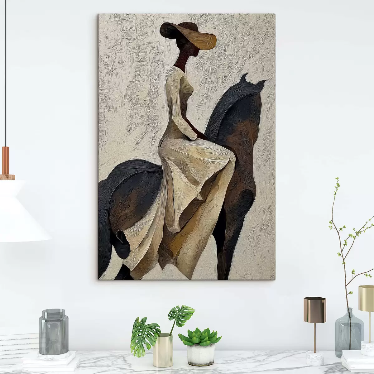 Sie können das Bild an Schrauben aufhängen. Dazu legen wir unseren Bildern Halterungen bei, mit denen Sie das Bild bequem aufhängen können.