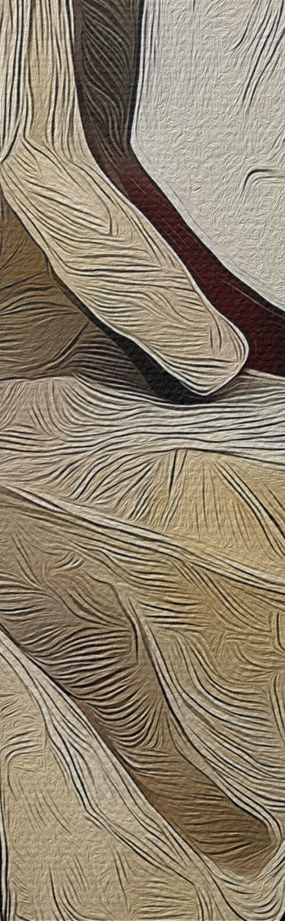 Um die Leinwand auf Keilrahmen zu spannen, ohne das Bild zu beschädigen, verwenden wir ein gespiegeltes Bild.