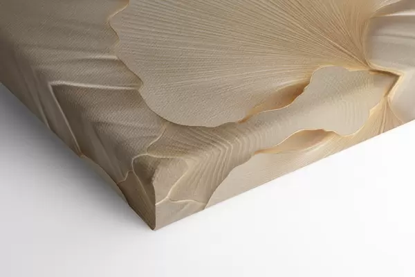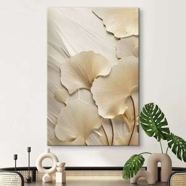 Wandbilder Abstrakte Ginkgoblätter vor einem strukturierten, hellen Hintergrund, elegante und abstrakte Komposition Art. s47867
