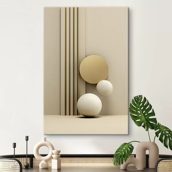 Wandbilder Abstrakte beige moderne Kunst mit vertikalen Linien und Kugeln Art. s47871