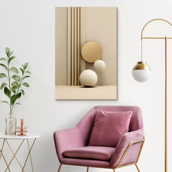 Wandbilder Abstrakte beige moderne Kunst mit vertikalen Linien und Kugeln s47871