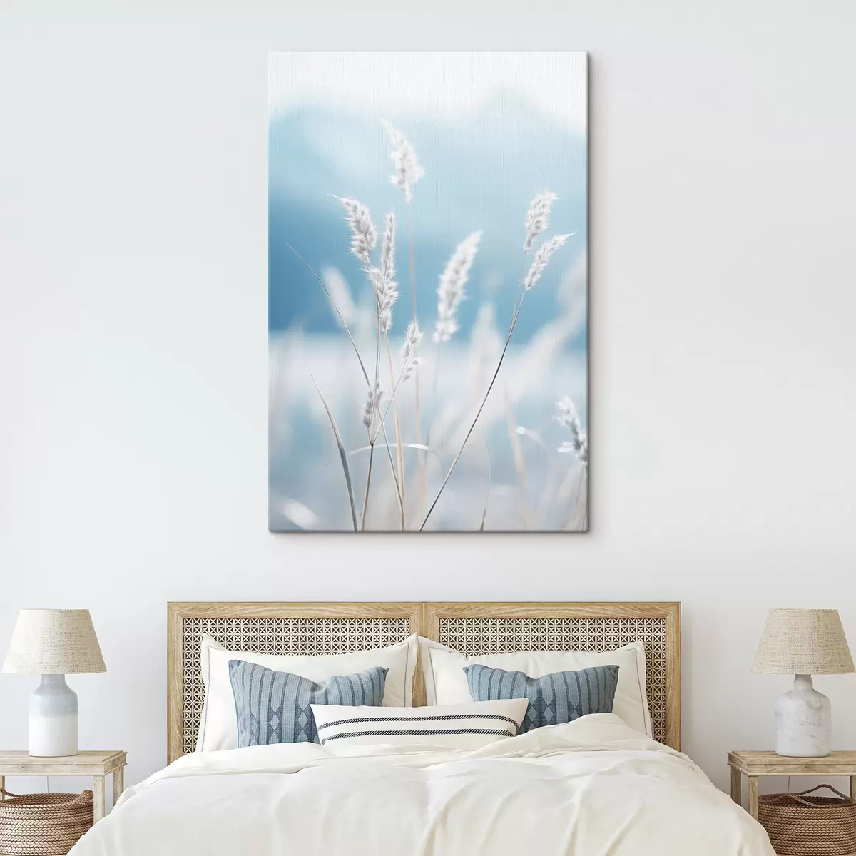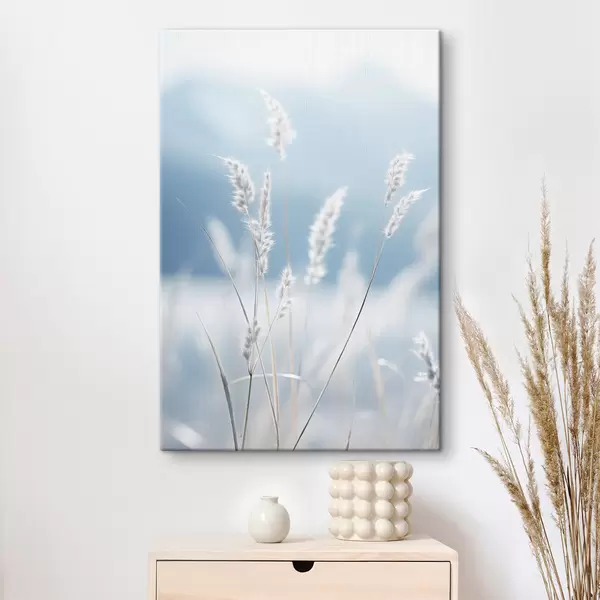 Wandbilder Weißes, flauschiges Gras vor einem sanften blauen Himmel, mit geringer Tiefenschärfe Art. s47880